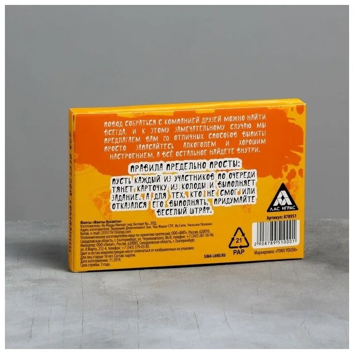 Купить игра для компании "фанты буханты" 20 карт от 100 руб. с доставкой до пункта выдачи в Усть-Лабинске. Интернет магазин ДекаМаркет. Оплата при получении.